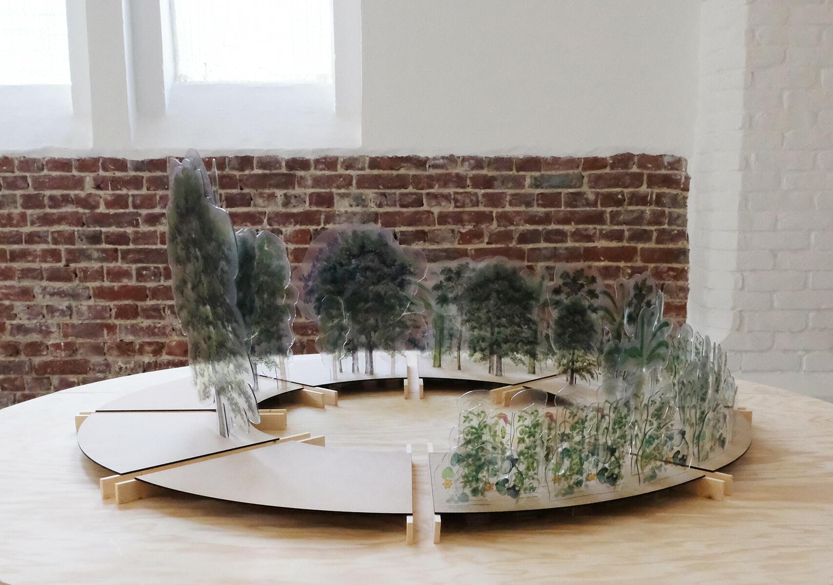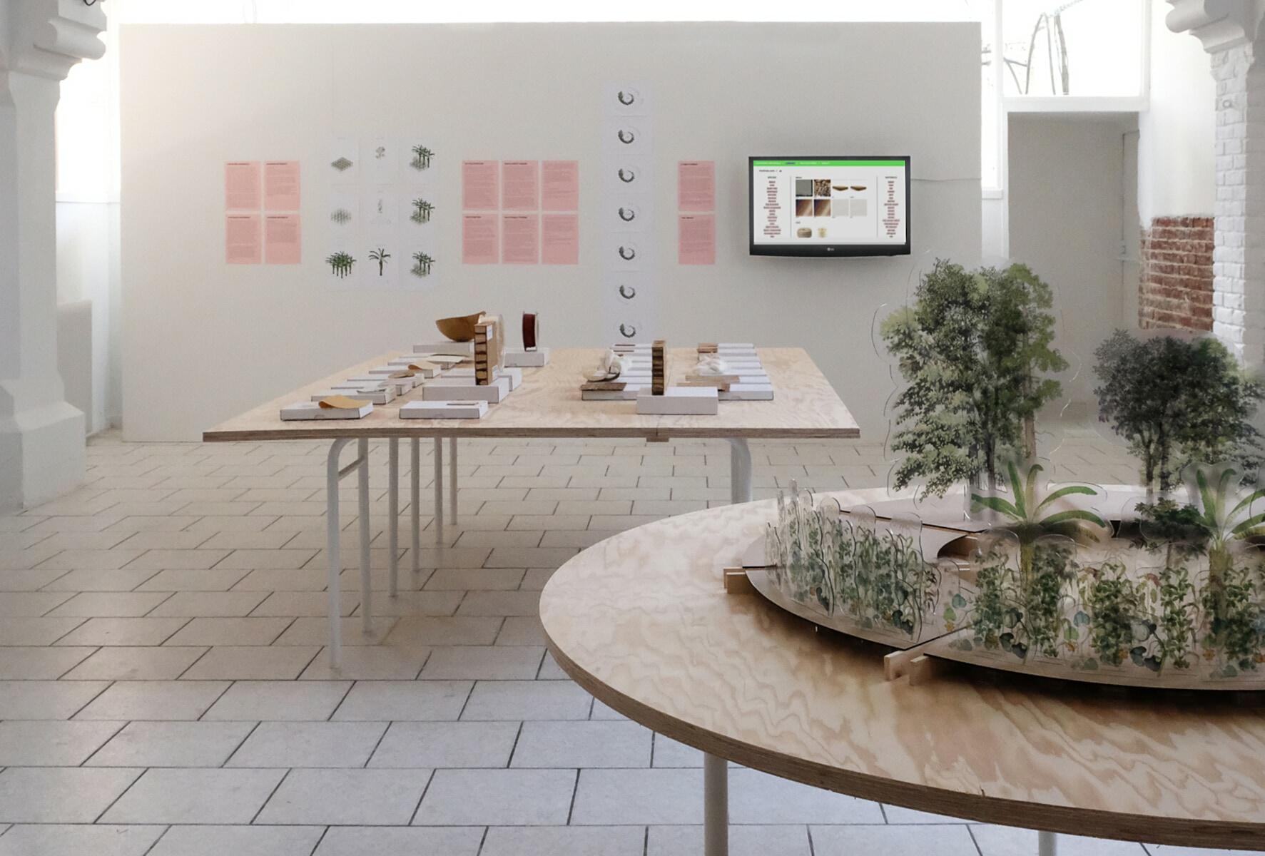 In the context of the exhibition “Infinite Creativity for a Finite World” the development of this ongoing project, its research practice and its initial findings are presented. The Milpa Forest Garden was chosen as the first case study and a selection of 13 species of flora has been made, the one more recurring in the literature, even if it’s accounted that in the Milpa Forest Garden more than 90 species can be found. Out of the 13 species 7 material typologies have been identified. Each species and associated material typology has been mapped in relation to the duration of the Milpa Cycle, giving us an overview of what potentially is producible throughout the 20 years of the Maya Forest Garden from a polycultural biomass. In the installation it’s possible to see a collection of material samples produced from the species present in the ecosystem under investigation. Together with a 3 dimensional illustration that guides you through the circular life of the Maya Forest Garden over the span of 20 years.